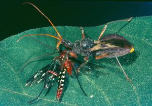 Feed on many different pests – prefers soft bodied prey e.g. caterpillars and small bugs such as mirids. Nymphs can consume up to 160 small – medium larvae over a 10 week period | Approaches victims from behind, stabs with stylet-like mouthparts containing an enzyme which dissolves organs. Bugs suck these out – leave an empty shell of prey | Visual and sweep net | Found in crops, urban areas, coastal regions, forests and woodlands. Mainly in spring |