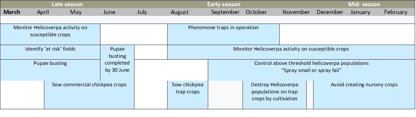 Note: The AWM did not apply to H. punctigera (an annual migrant from inland regions, meaning that there are no opportunities to manage its population other than in-crop).