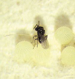 Parasitoid wasps lay eggs into the newly laid eggs of caterpillar pests. The developing caterpillar is killed, and a wasp emerges from the egg. | Not easily seen in the field. Eggs may appear black (rather than the usual white or brown ring). Wasp activity can be monitored by collecting eggs from the field and determining the proportion parasitised. Over time, repeat collections provide a useful guide to the likely impact on the pest population. |