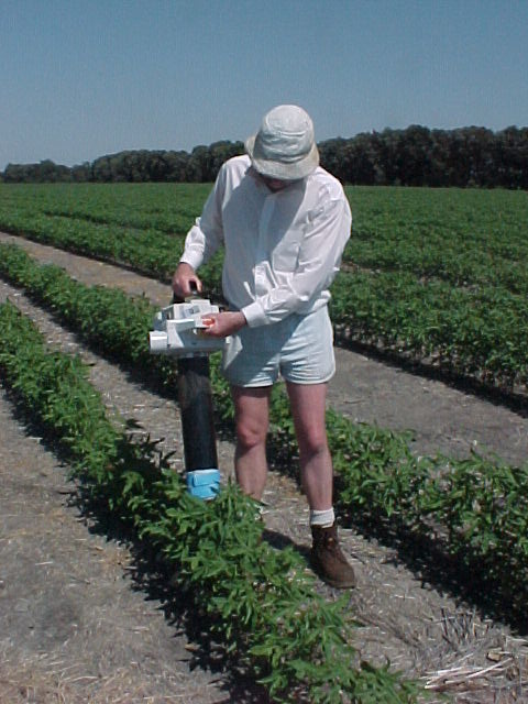 - Place beat sheet with one edge at the base of plants in the row to be sampled.